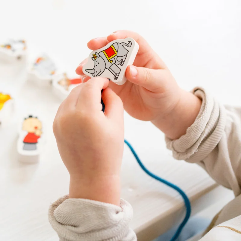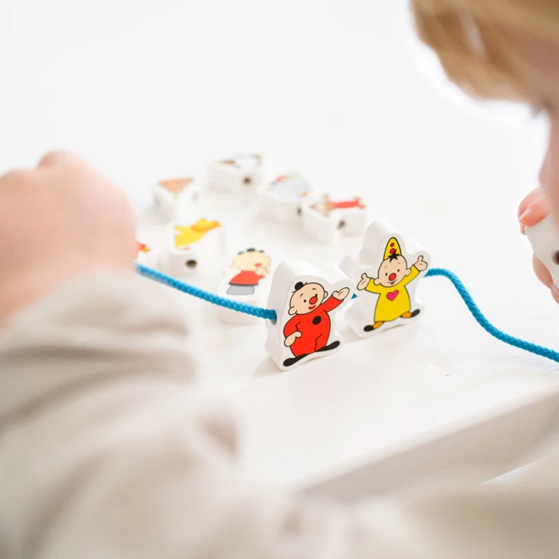 Maak de mooiste kralenketting met al je favoriete Bumba karakters. De rijgkralen zijn gemaakt van hout en verbeelden allemaal een ander karakter uit de Bumba tv-show, zoals Bumba zelf, maar ook Bumbaloo en al hun vriendjes. Spelen met rijgkralen verbetert de motoriek en het leren herkennen van vormen en kleuren. Inclusief 2 veters om aan te rijgen. Geschikt voor kinderen van 3 tot 6 jaar.