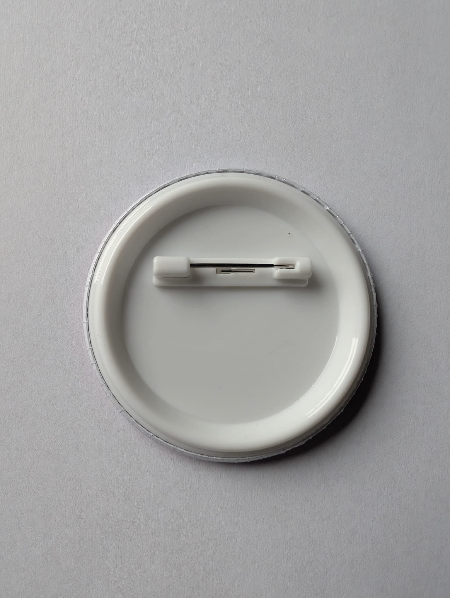 - Afwerking: stevige kunststof button met metalen speldsluiting