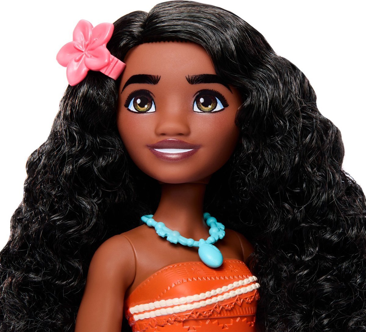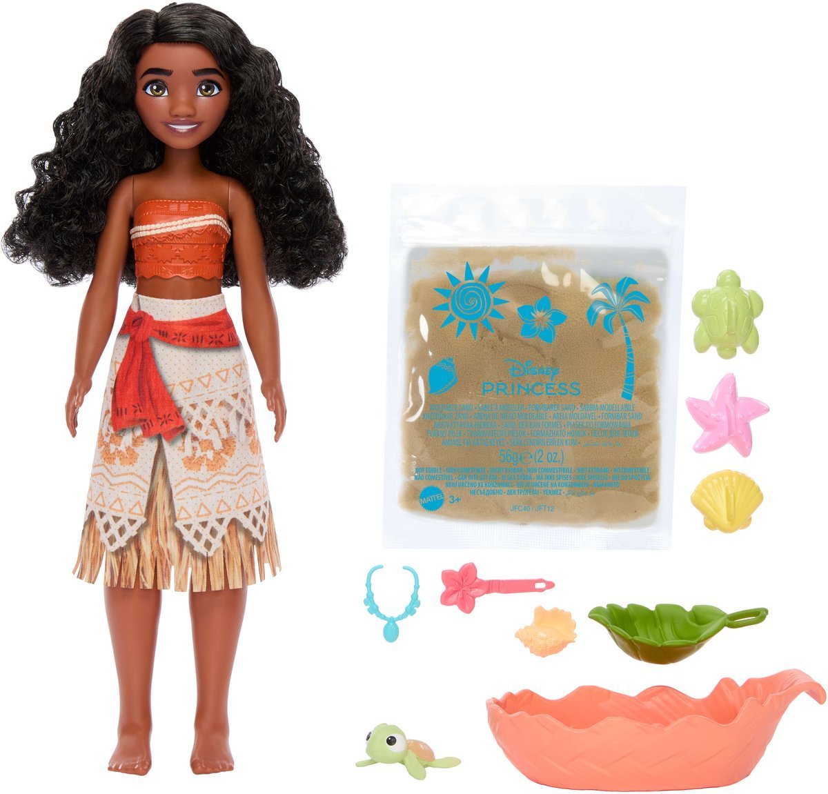 Beleef magische strandavonturen met de Disney Princess Moana-pop met schildpad. Deze Vaiana-pop is geïnspireerd op de populaire Disneyfilm Vaiana en draagt haar herkenbare outfit met afneembare rok en ketting. De set staat volledig in het teken van spelen met zee en strand.