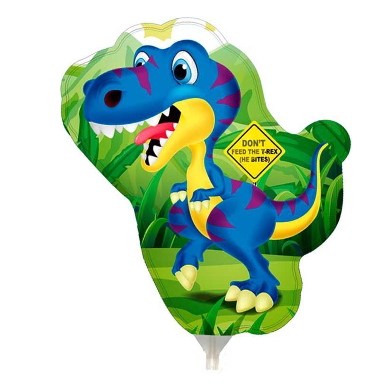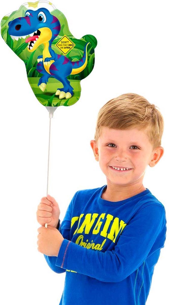 Folieballon in de vorm van een dino. Inclusief stokje om de ballon op te blazen.
