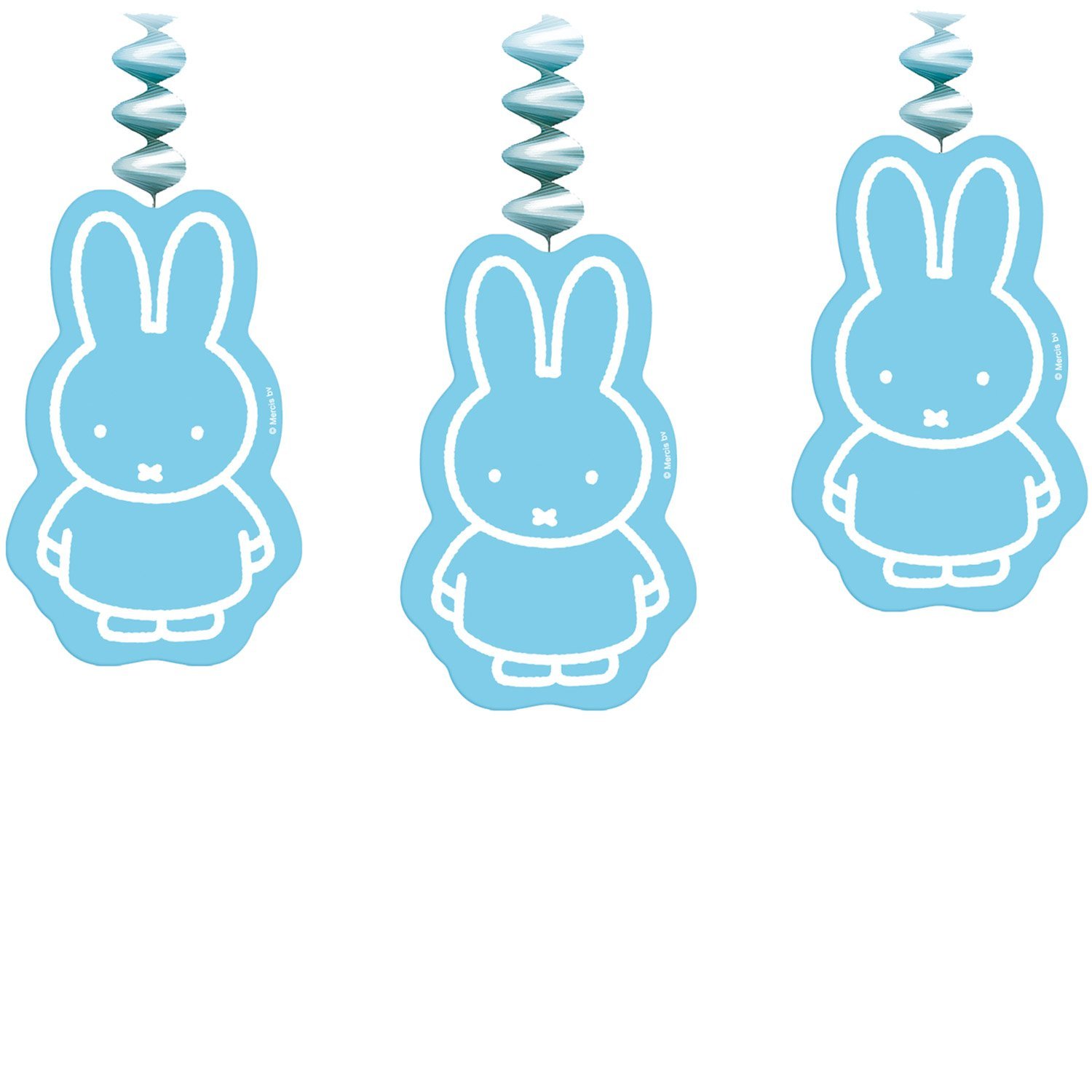 Vier de geboorte van je zoon met de Nijntje Hangdecoratie Blauw, een set van 3 rotorspiralen. De blauwe Nijntje-decoratie draait en creëert een leuk en speels effect, ideaal om het kraamfeest in thema aan te kleden. Perfect voor in de kamer of boven de feesttafel.