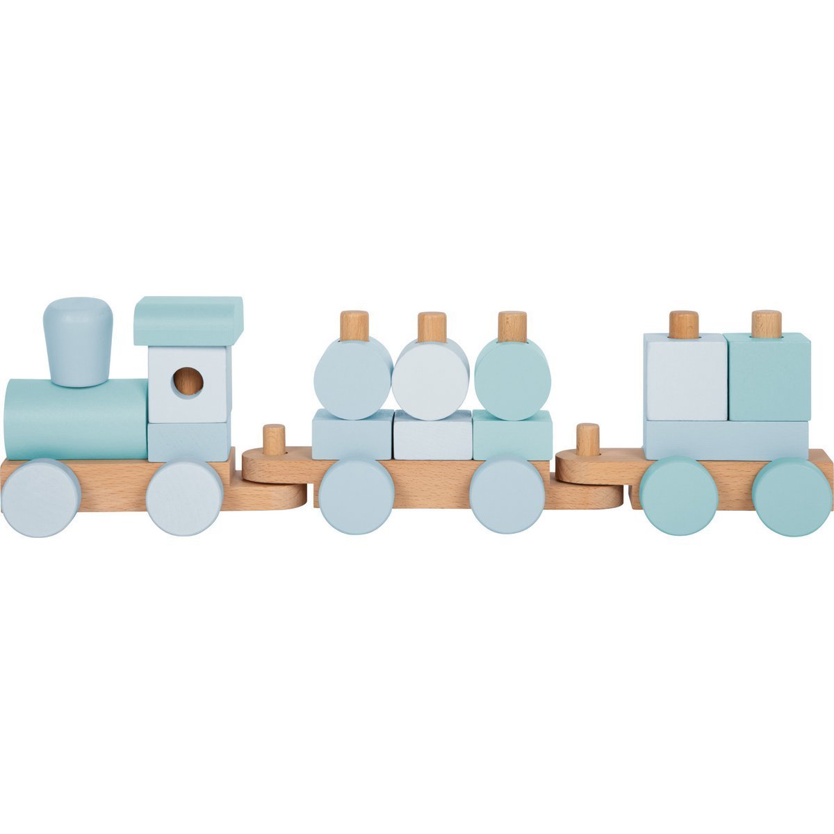 Dankzij de zachte kleuren, het moderne ontwerp en het hoge aandeel naturel hout past deze trein perfect in elke kinderkamer. Het speelgoed stimuleert fijne motoriek, hand‑oogcoördinatie en ruimtelijk inzicht op een speelse manier. De stevige houten constructie zorgt ervoor dat de trein tegen een stootje kan en jarenlang meegaat. Ook als decoratief item is deze houten trein een stijlvolle blikvanger en een geliefd cadeau voor geboorte, verjaardag of doop.