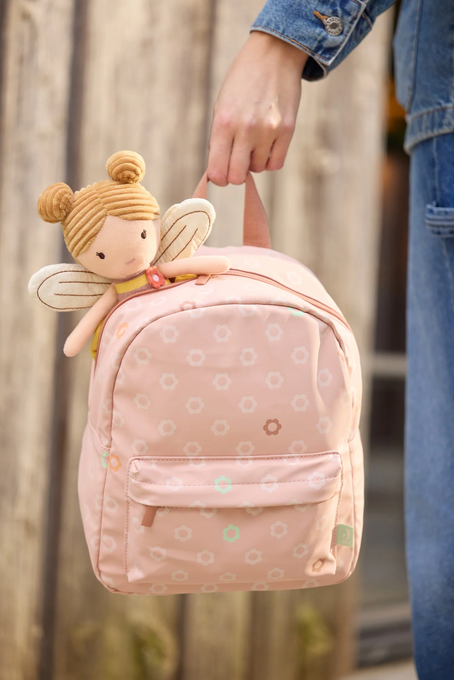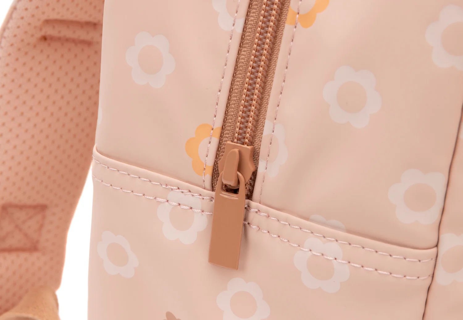 Dit rugtasje is perfect voor je kleintje! De tas is voorzien van zachte kleuren en speelse bloemetjes, wat het tasje een vrolijke en dromerige uitstraling geeft, perfect voor kleine avonturiers die de wereld stap voor stap ontdekken. Het rugtasje is waterafstotend en praktisch ingedeeld met slimme opbergvakjes, waaronder een apart vak voor een beker. Dankzij de verstelbare mesh schouderbanden met extra bevestiging blijft het tasje altijd comfortabel en goed zitten. Extra leuk: het rugtasje kan gepersonaliseerd worden, zodat het écht van jouw mini is.