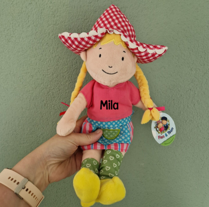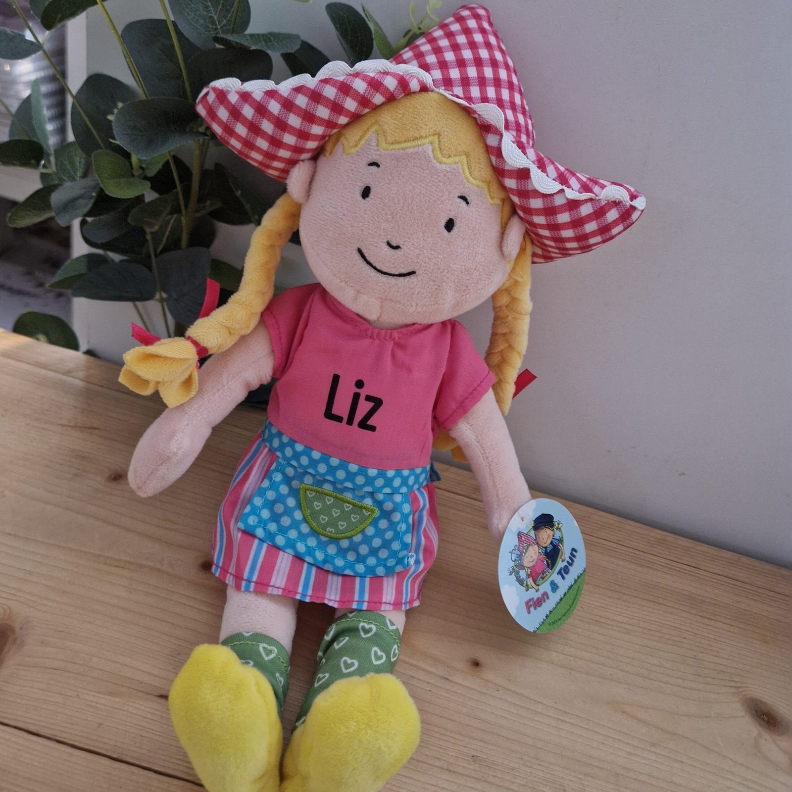 Knuffel van Fien uit de populaire films en serie van Fien en Teun, een boer en boerin uit Molenwaard. De knuffel is 35 centimeter groot en gemaakt van zacht pluche.