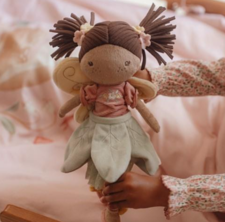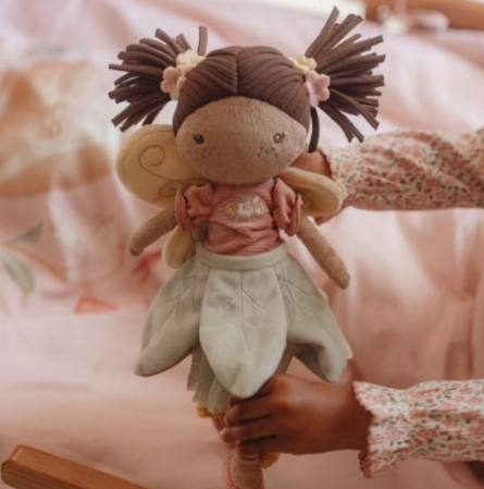Ontmoet Fairy Evi, een zachte pluche fee met vleugeltjes uit de Fairy Garden collectie. Ze neemt je mee op avontuur in de bloementuin, tussen kleurrijke bloemen en bijtjes. Fairy Evi is knuffelbaar en perfect voor kleine handjes. Haar lieve gezichtje en gedetailleerde outfit maken haar een fijn speelmaatje en een mooie decoratie voor de kinderkamer. Laat je kind genieten van de avonturen met Fairy Evi!