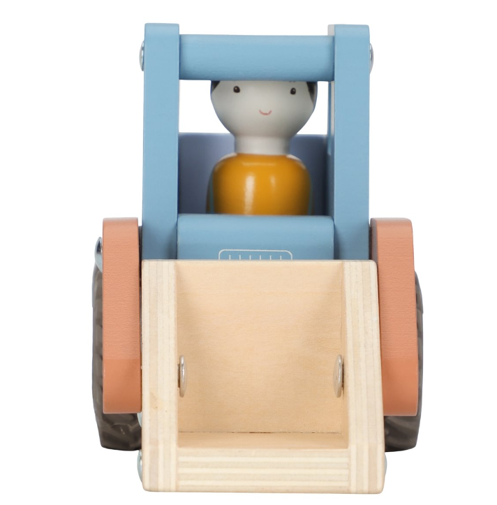 De rubberen wielen zorgen voor soepele en stille ritten over elke speelvloer. Samen met de meegeleverde houten bouwvakker kunnen jonge bouwers aan de slag om hun eigen bouwwerken en scenario’s te creëren.