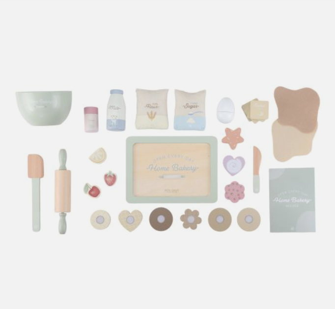 Met de Little Dutch houten bakset wordt elke speelmoment een gezellig bakavontuur. Deze complete speelset nodigt kinderen uit om hun eigen koekjes en gebak te maken in de speelkeuken. Van het mengen van ingrediënten tot het versieren van de koekjes: alles wat een kleine bakker nodig heeft zit erbij. De set is uitgevoerd in zachte, herkenbare Little Dutch kleuren en gemaakt van stevig hout, wat zorgt voor langdurig speelplezier.