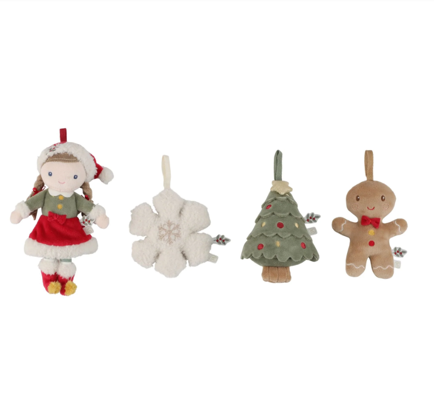 Maak van je kerstboom een magisch tafereel met de Rosa kersthangers set. In de doos vind je 4 pluche ornamenten: kerstpop Rosa, een vrolijk peperkoekmannetje, een feestelijke kerstboom en een zachte sneeuwvlok – allemaal met zorg ontworpen om je boom nét dat beetje extra te geven.