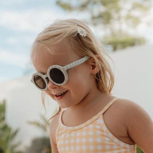 Zonnige dagen in stijl. Zodra de zon begint te schijnen, pak je deze modieuze Fresh Greens zonnebril en ben je klaar om eropuit te gaan. Naar het strand, de speeltuin, de dierentuin, deze zonnebril met ronde glazen houdt de zon uit je ogen. De zonnebril biedt UV400-bescherming voor de ogen van je kleintje en ziet er ook nog eens stijlvol uit! Match met de badkleding of poncho voor een gecoördineerde look.