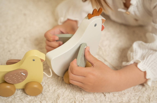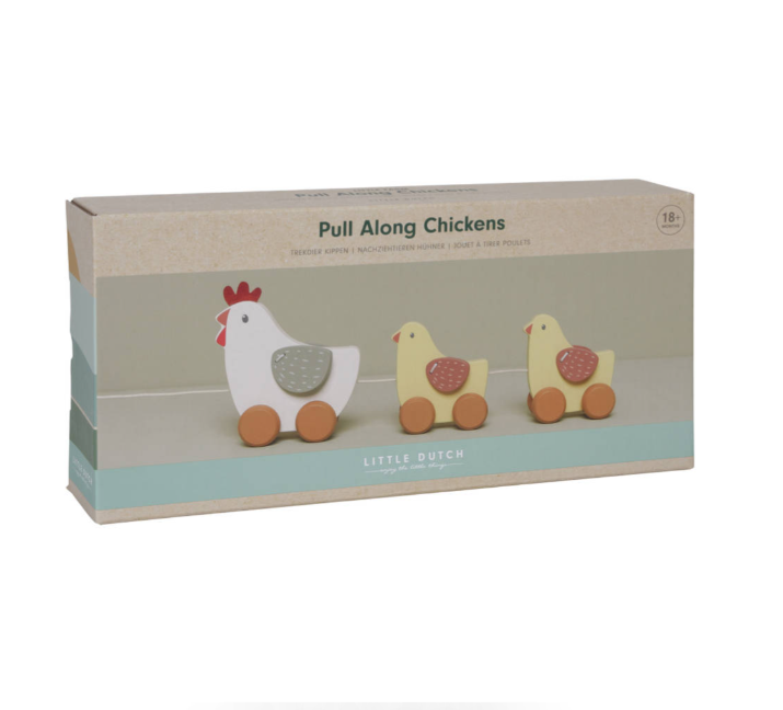 Deze kippen gaan graag met je mee op ontdekkingsreis door het huis. Trek aan het touwtje en ga samen op avontuur! Deze trekdieren zijn gemaakt van duurzaam hout. Het moedigt jouw kindje aan om te lopen en helpen bij de motorische ontwikkeling.