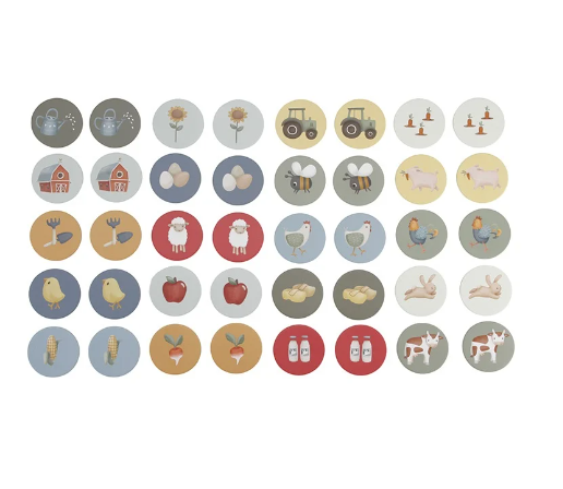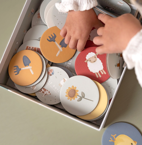 Dit Little Dutch memospel met boerderijthema kan worden gespeeld met één of meer spelers. Op ieder kaartje is een leuke illustratie te zien van een dier of spullen die je kan vinden op de boerderij. Op deze manier traint je kindje het geheugen en leert het spelenderwijs belangrijke vaardigheden, zoals concentratie en spelontwikkeling.