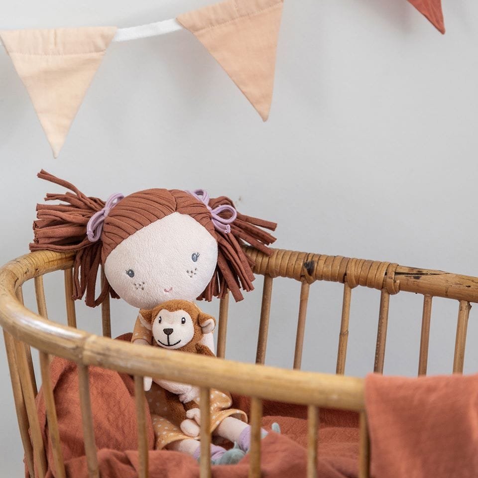 Hallo! Mijn naam is Sophia en ik ben jouw nieuwe vriendinnetje. Met mijn knuffelaapje in mijn ene hand en jou in mijn andere hand, kunnen wij alles aan. Samen staan wij sterk! Met de aankoop van deze pop steunt u Stichting Vrienden van het Sophia!