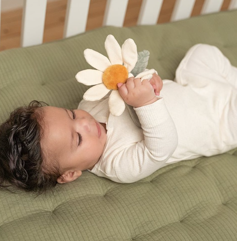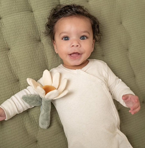 Hoe schattig is deze rammelaar in de vorm van een bloem uit de Little Farm collectie! Als je er mee speelt hoor je een plezierig geluidje. In de blaadjes van de bloem is een knisper verstopt voor extra plezier. De rammelaar stimuleert de hand-oogcoördinatie, is van heerlijk zacht materiaal gemaakt en kan makkelijk door kleine kinderhandjes vastgepakt worden.