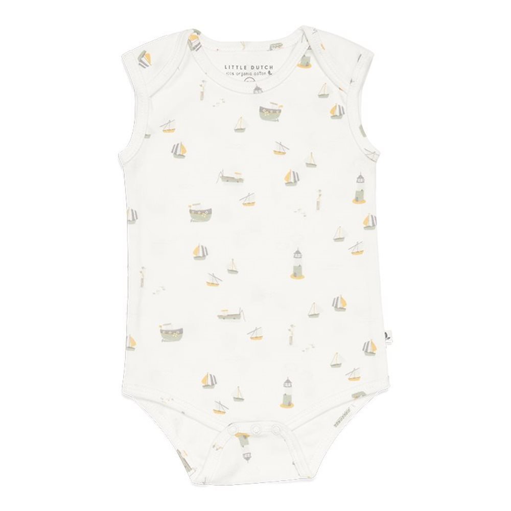 Little Dutch Romper Mouwloos – Sailors Bay White | Biologisch katoen – Zomerromper met nautisch dessin
