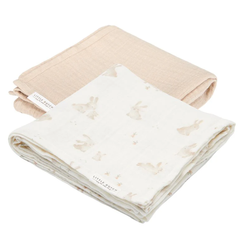 Little Dutch Swaddle Doeken Set Hydrofiel 70 x 70 – Baby Bunny / Beige