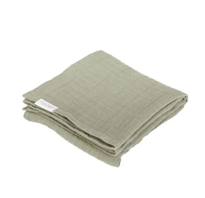 2. een effen olijfgroene hydrofiele doek