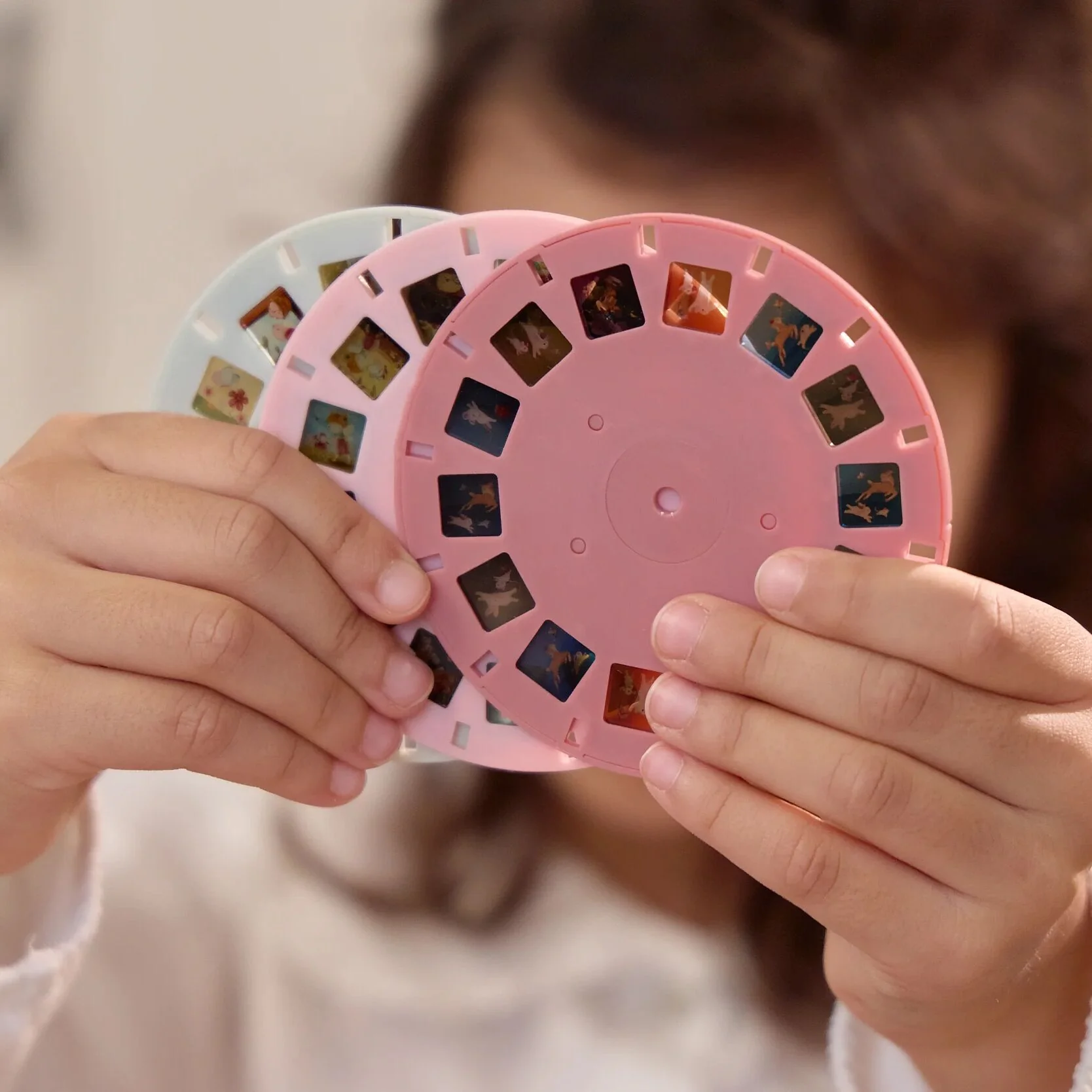 Door eenvoudig aan de schijfjes te draaien, verschijnen er drie verschillende magische verhalen vol verwondering. Elke draai neemt kinderen mee op een nieuw avontuur, waardoor spelen nooit saai wordt. Het lieve vlinderdesign en de zachte roze tinten maken deze verhalenkijker extra aantrekkelijk en perfect voor jonge kinderen.