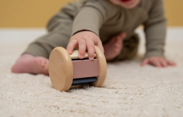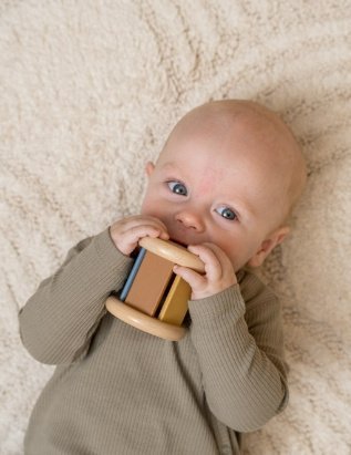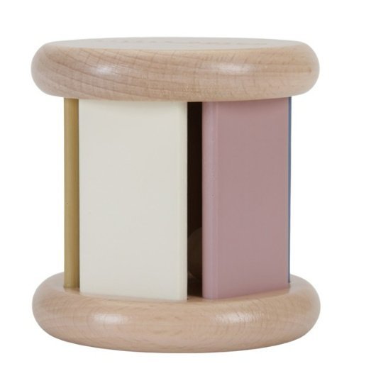 Rol en laat de rammelaar klinken! Houd deze houten rammelaar aan het rollen en het rinkelende bel geluid gaat alsmaar door. Probeer hem maar te pakken en schud de rammelaar heen en weer voor nog meer vrolijke geluidjes. Een geweldig speeltje, in mooie vintage kleuren, om de hand-oogcoördinatie te bevorderen.