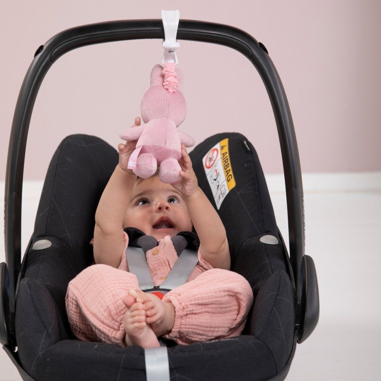 Met de Nijntje Baby Rib Trilfiguur Pink zal je kindje niet stil kunnen zitten! Wanneer je aan het figuur trekt, trilt en bibbert het alle kanten op. Het speeltje kan eenvoudig aan de autostoel of kinderwagen worden gehangen zodat je kindje zich heerlijk kan vermaken. Het figuur kan niet worden gewassen in de wasmachine en kan alleen met een vochtige doek worden afgenomen.