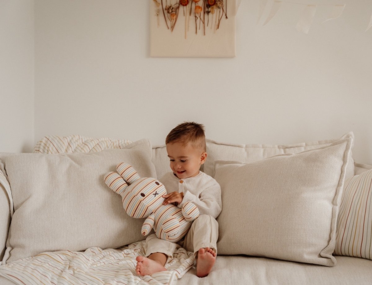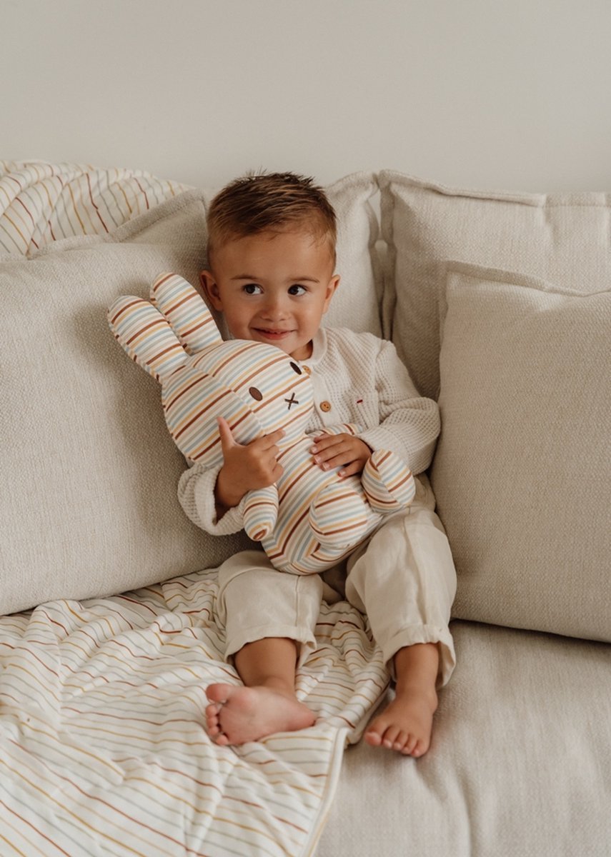 Hallo daar nijntje! Deze knuffel is helemaal bedekt in Vintage Sunny Stripes en is misschien wel het leukste nijntje van allemaal. Ze is zacht met een retro look en fleurt je dag helemaal op. Het iconische konijntje staat prachtig in de kinderkamer en matcht prachtig met andere items uit de Little Dutch collectie, zoals het bedlinnen en de swaddles.