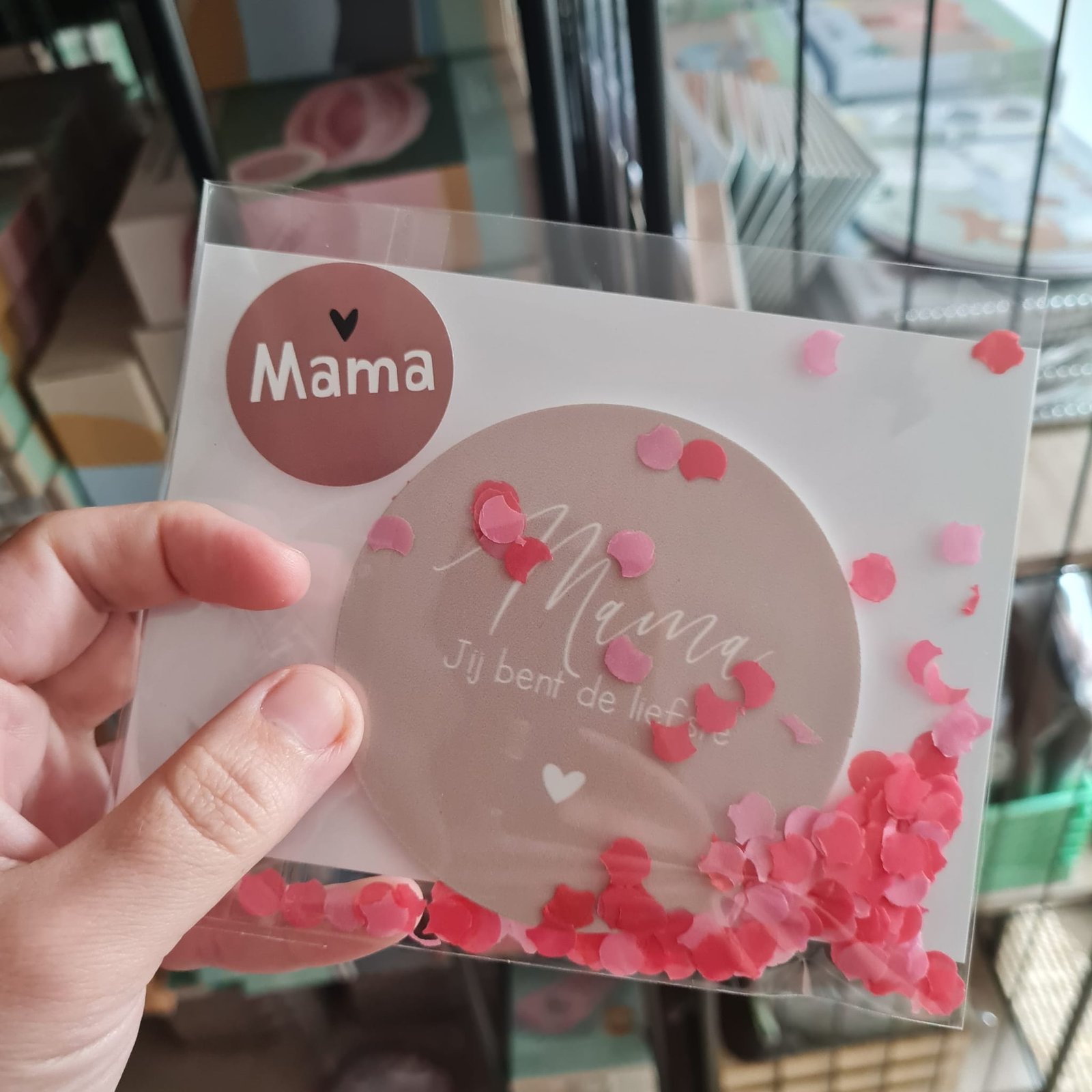Extra: Wordt geleverd met kaart, roze confetti en sticker in een cellofaan zakje