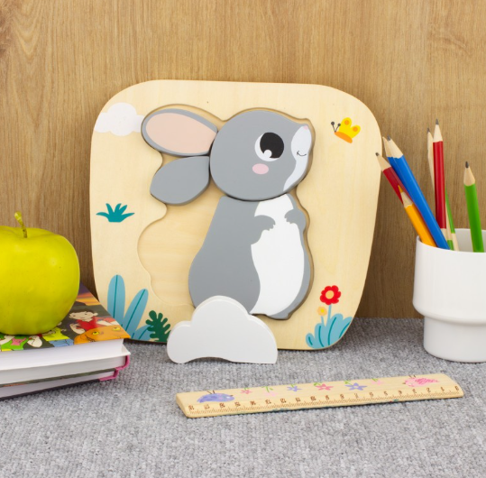 - Deze houten konijnenpuzzel is perfect voor kinderen vanaf 12 maanden. De 5 stukken hebben verschillende diktes, waardoor kinderen hun fijne motoriek en hun ruimtelijke waarneming kunnen ontwikkelen terwijl ze plezier hebben. De houten stukken zijn gemakkelijk te hanteren en te plaatsen, en de puzzel is ook zeer duurzaam voor langdurig gebruik. Met een afmeting van 22 x 19,8 x 1,8 cm is deze houten konijnenpuzzel het ideale educatief speelgoed voor jonge kinderen.