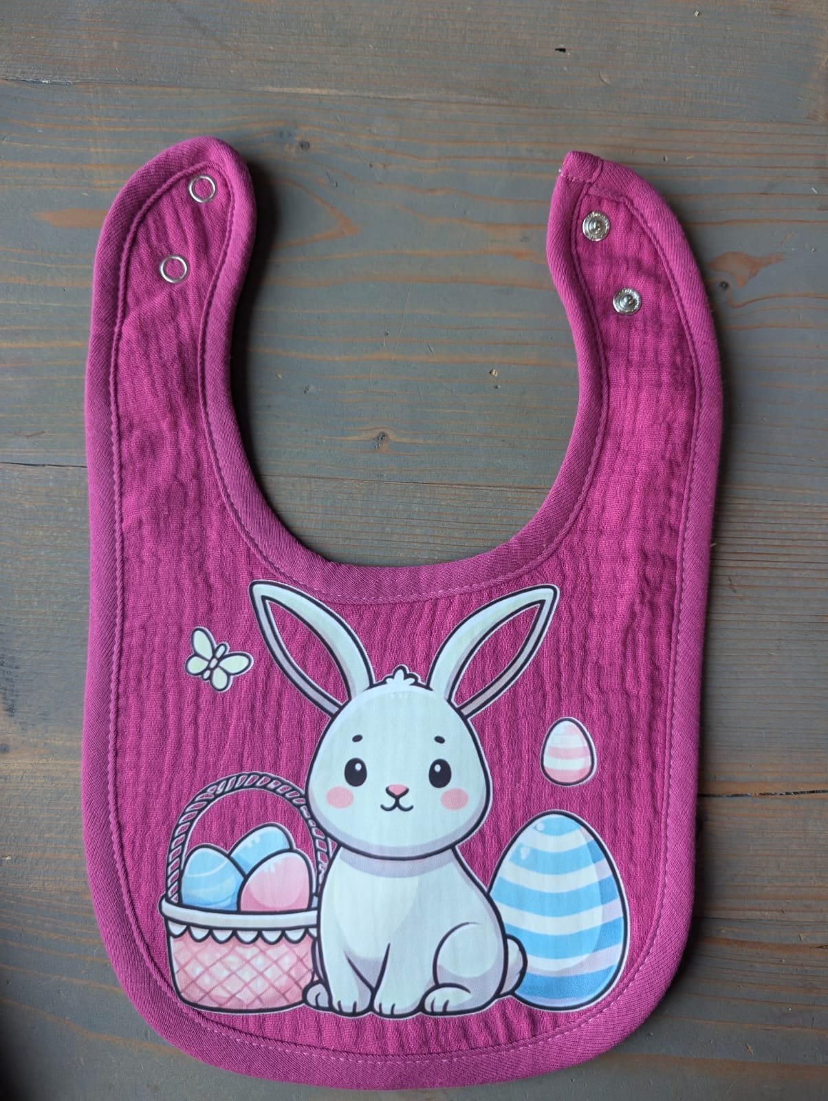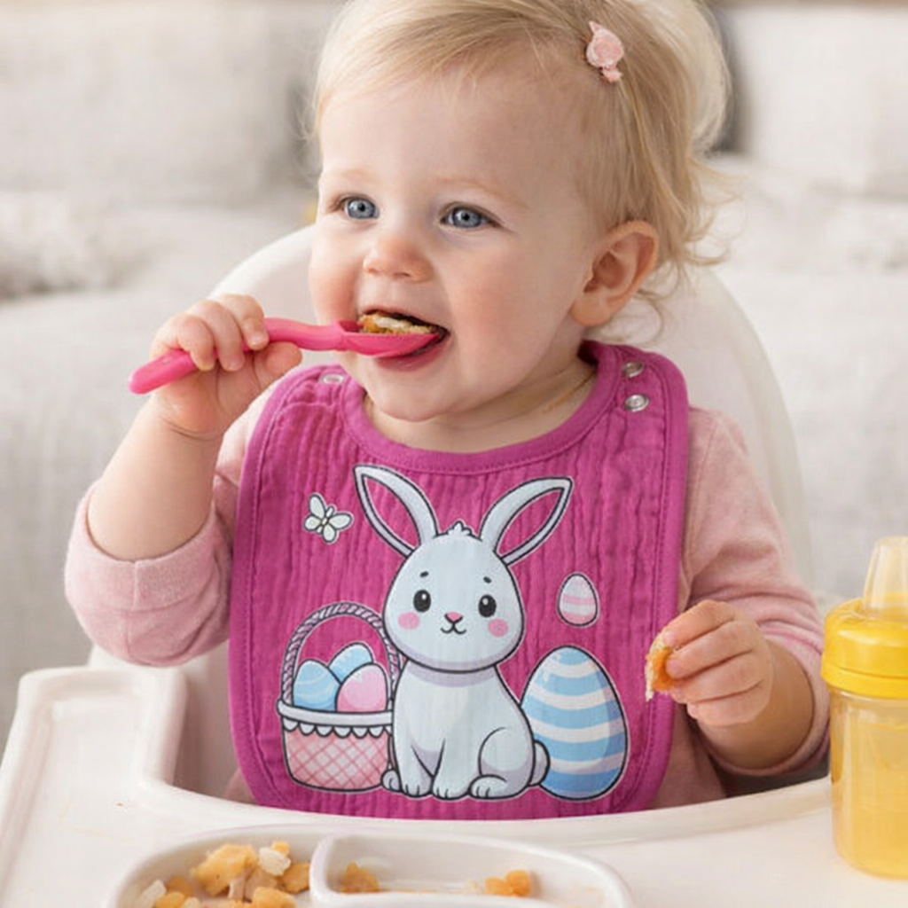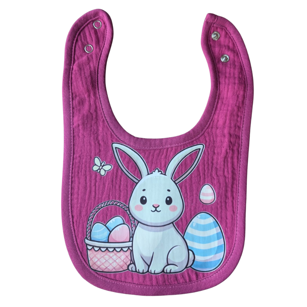 Deze slab met paashaas is een praktische en schattige toevoeging aan de babyuitzet. De slab voelt comfortabel aan op de gevoelige babyhuid en geschikt is voor dagelijks gebruik.