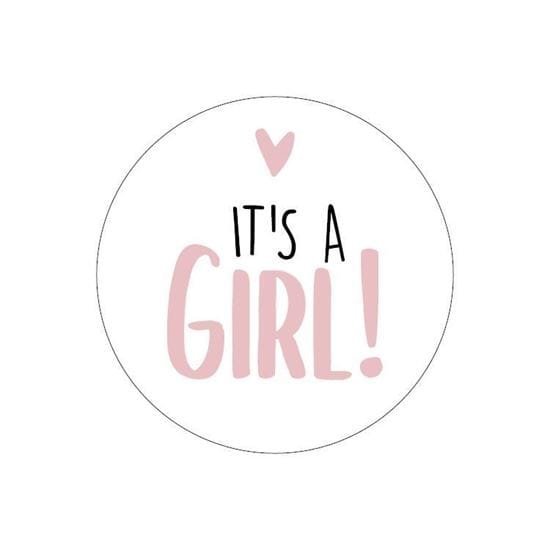 Sticker Rond It’s a Girl Wit met Roze tekst