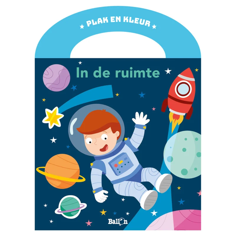 Plak en kleur erop los tijdens een ruimtemissie met dit handige meeneemboekje. Door het praktische handvat kun je het kleurboekje overal makkelijk mee naartoe nemen. Ben jij ook zo nieuwsgierig naar de ruimte? Help de astronauten weer kleur te brengen in de ruimte. Naderhand heb je ook nog een prachtige tekening om op te hangen of weg te geven. Dit kleurboek bevat 16 plak- en kleurplaten.