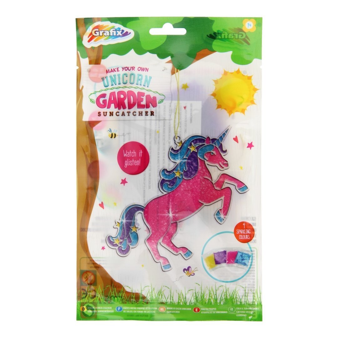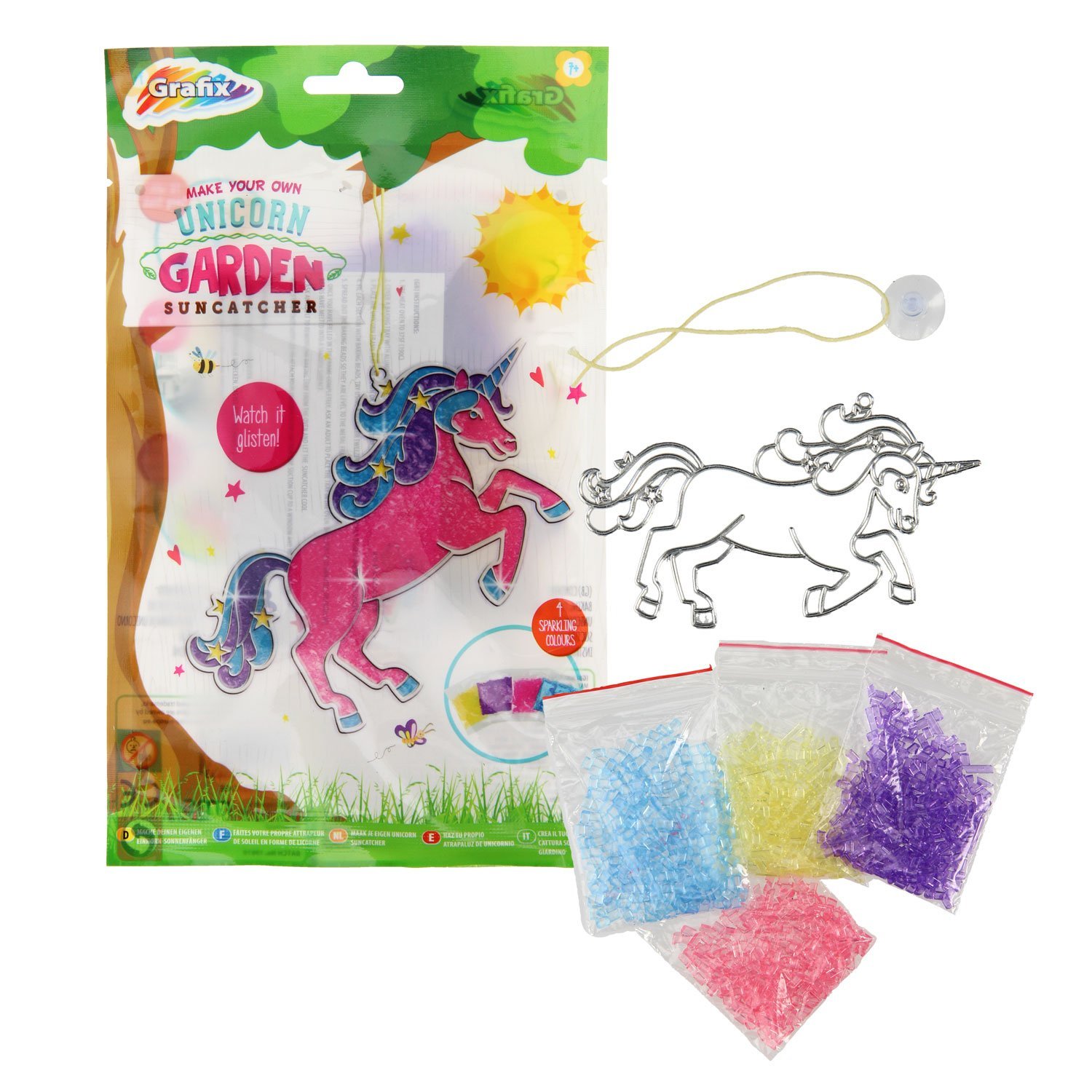 Maak met deze knutselset je eigen zonnevanger in de vorm van een eenhoorn. In de set vind je een eenhoornframe, vier sprankelende gekleurde smeltkorrels, een zuignap en de instructies. De zonnevanger is zo gemaakt: vul het frame met smeltkorrels, bak hem in de oven en je eenhoorn zonnevanger is klaar om opgehangen te worden! Geschikt vanaf 7 jaar.