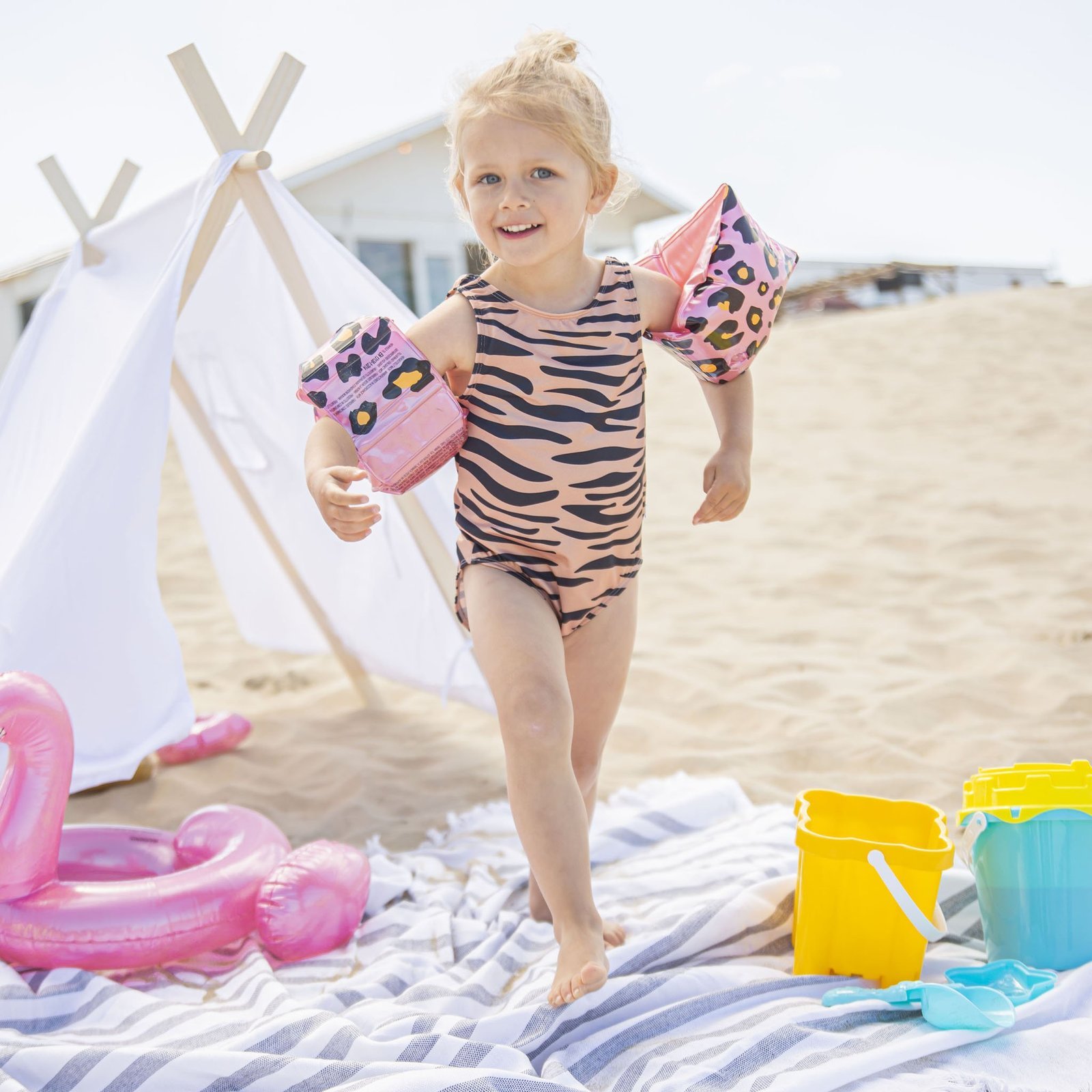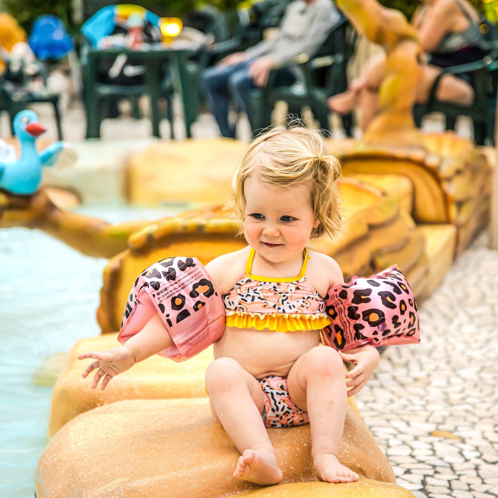 de 0 en 2 jaar oud en zullen ervoor zorgen dat je baby op een veilige en leuke manier kan spelen in het water. De ronde zwembandjes zorgen voor ondersteuning bij het baby zwemmen en zijn geschikt voor de gewichtsklasse 0 – 15 kg. De baby zwembandjes hebben een in het oog springend design met een stralende panterprint! Dit zorgt ervoor dat je baby zal stralen in het water!
